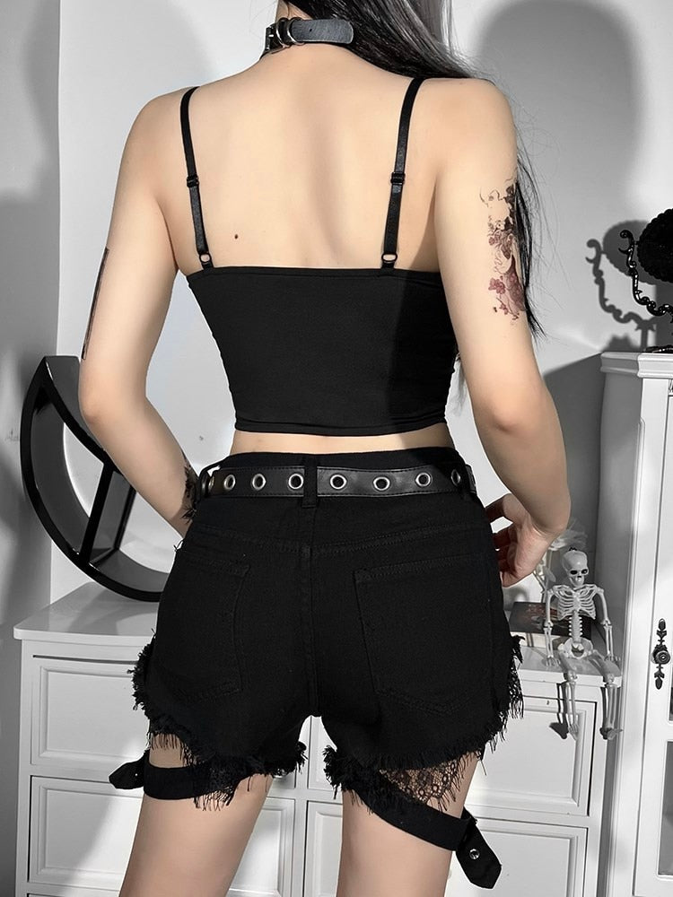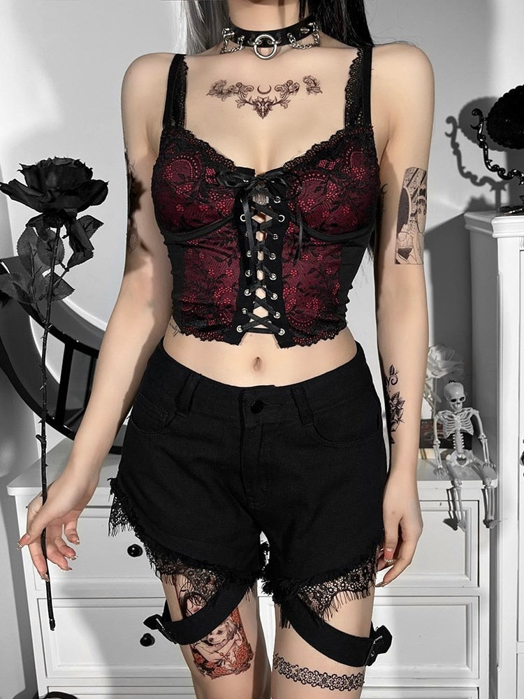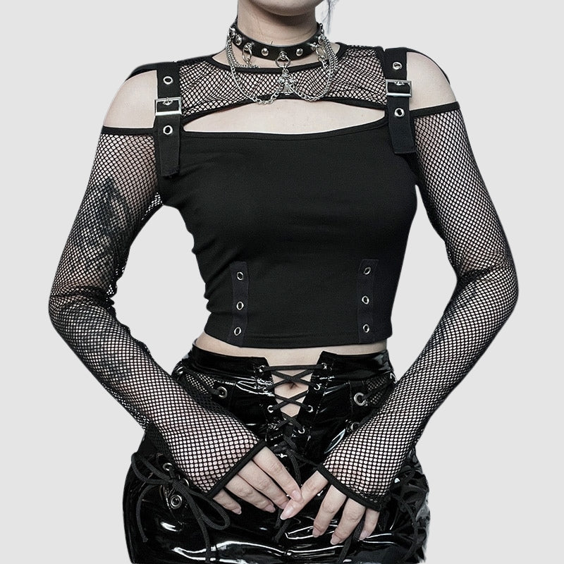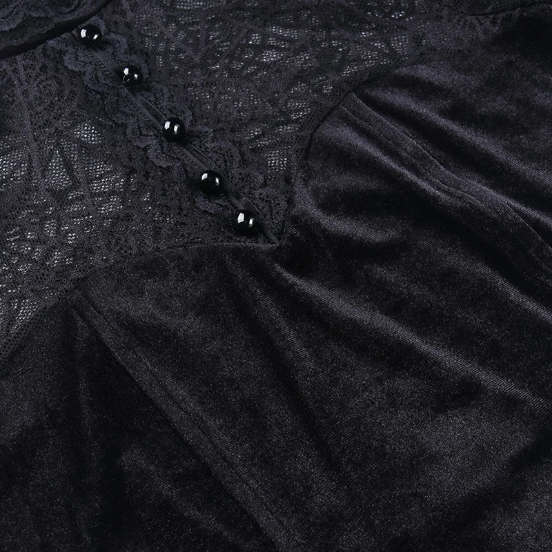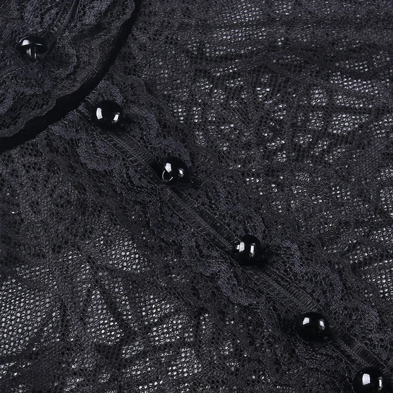 Nuestras camisetas góticas con encaje combinan la elegancia romántica del encaje con el estilo oscuro del gótico. Detalles como inserciones de encaje en mangas, escotes y costuras laterales aportan un toque delicado que contrasta con los elementos más crudos del diseño. Este tipo de camisetas son ideales para salidas nocturnas o eventos especiales, aportando un toque refinado y elegante a tu look gótico. Combina estas camisetas con faldas largas, pantalones ajustados o accesorios de terciopelo para un estilismo sofisticado y único.