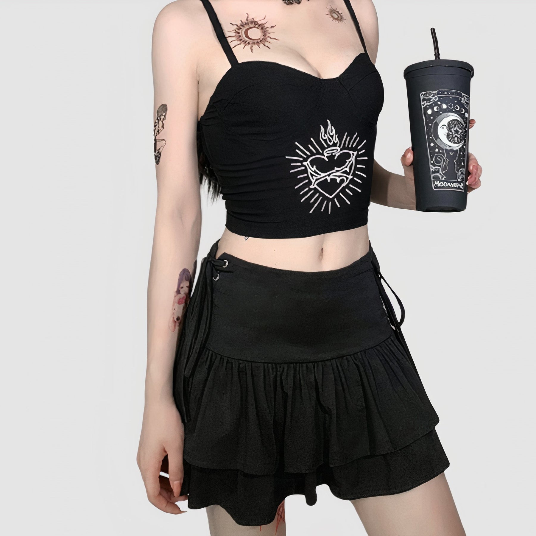 Las camisetas góticas minimalistas ofrecen una versión más discreta del estilo gótico, perfecta para quienes prefieren un look refinado. Los diseños simples, con detalles sutiles como pequeños símbolos místicos o bordados en negro, crean una prenda elegante y versátil. Estas camisetas son ideales para quienes buscan incorporar el estilo gótico en su vestimenta diaria de forma sutil y sofisticada, combinando bien con prendas clásicas como pantalones ajustados o faldas lápiz.