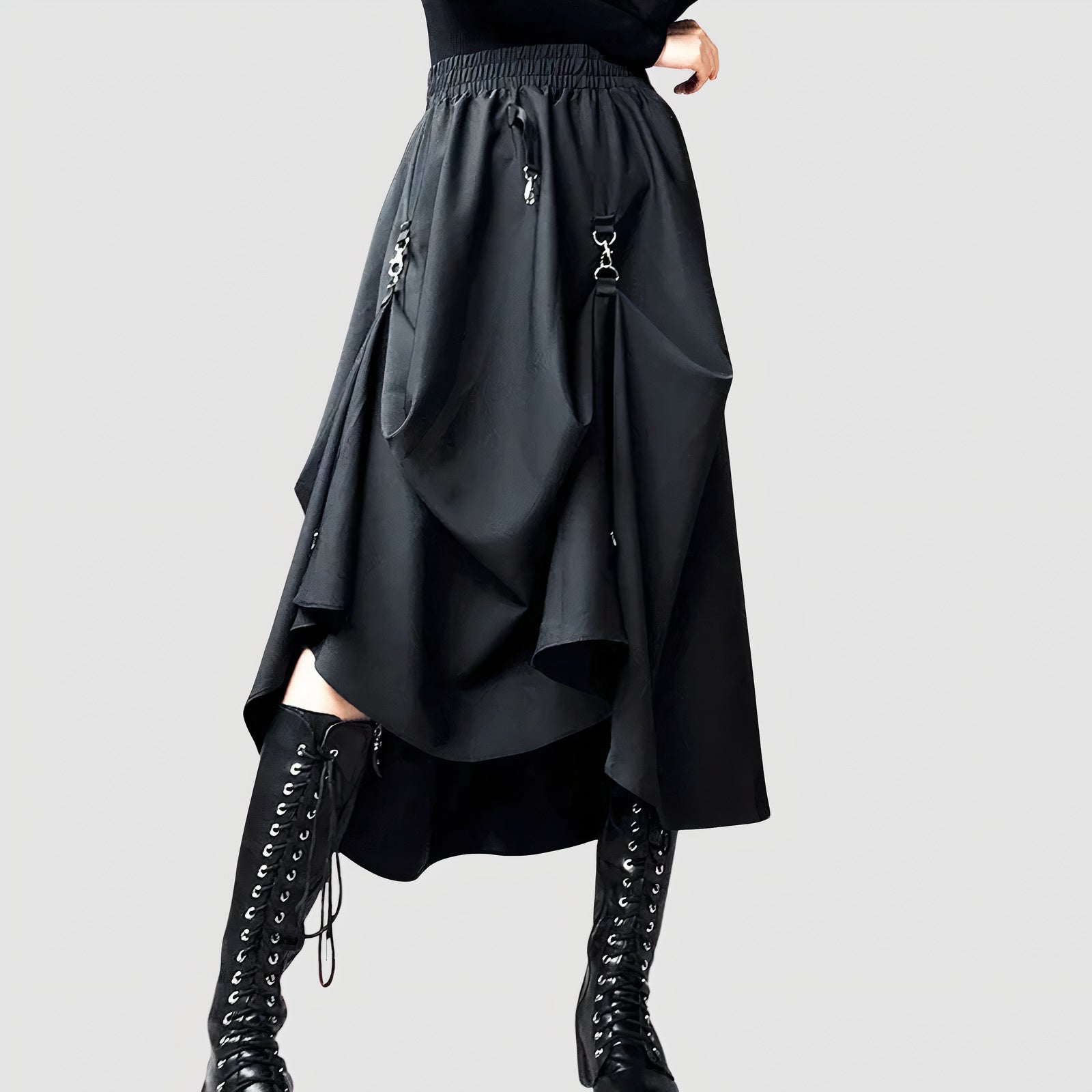 Las faldas largas góticas son el epítome del estilo clásico combinado con el misterio del gótico. Son perfectas para eventos formales, cenas elegantes o salidas nocturnas. Fabricadas con materiales como terciopelo suave y microfibra delicada, ofrecen una mezcla de elegancia y confort. Los detalles como encajes ricos, bordados sutiles y aberturas estratégicas añaden un toque de sofisticación y dramatismo a cada diseño. Cada falda larga está terminada con gran precisión, garantizando un estilo que llama la atención y te hace destacar entre la multitud.