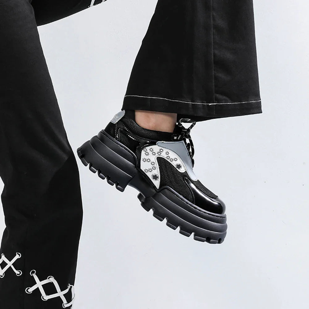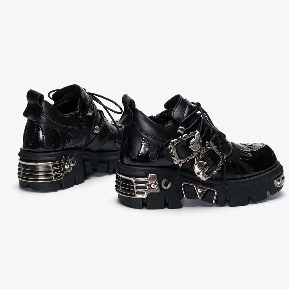 Nuestros zapatos góticos con elementos metálicos están dedicados a personas a las que les gusta destacar y prefieren un estilo con carácter. Los adornos metálicos, las líneas nítidas y las formas poco convencionales confieren a estos zapatos no sólo expresividad, sino también una identidad fuerte e individual. Diseñados para llamar la atención y expresar independencia, estos zapatos son perfectos para quienes buscan algo más que calzado informal. Los refuerzos metálicos no sólo añaden estética, sino que también brindan durabilidad y resistencia adicionales, lo que los convierte en una excelente opción para uso a largo plazo en una variedad de condiciones.