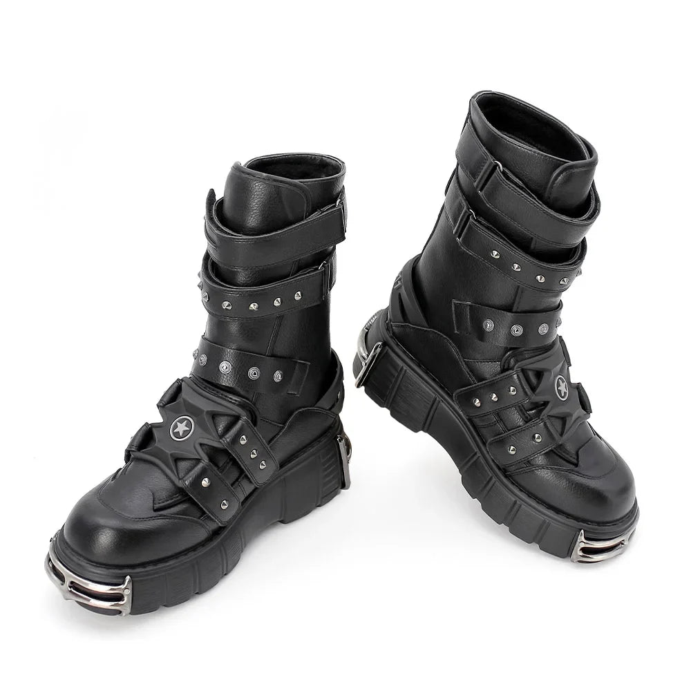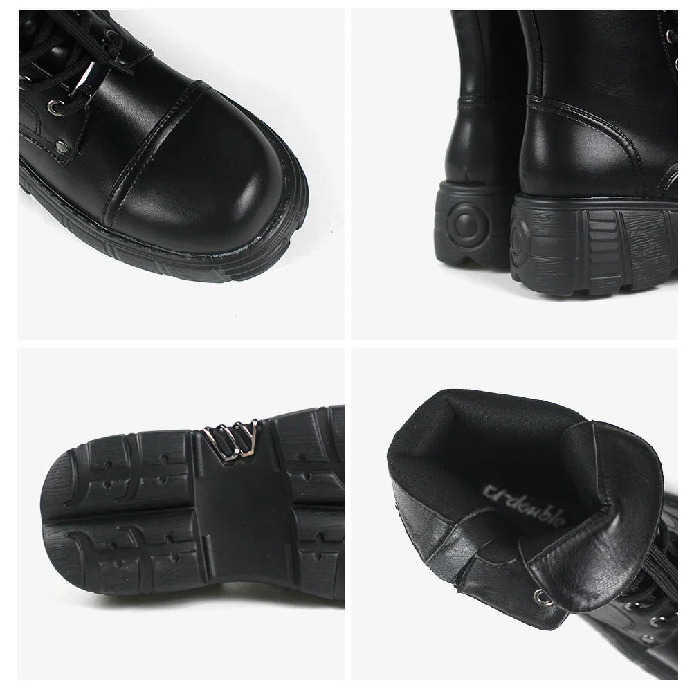 Las botas góticas de caña alta están especialmente diseñadas para brindar soporte y protección adicionales en los días más fríos. Su sólida construcción mantiene el pie caliente y seco, lo cual es importante en condiciones climáticas inciertas. El diseño único de estos zapatos no solo llama la atención, sino que también agrega coraje y expresividad a cualquier estilismo invernal, lo que los convierte en la opción para los hombres que buscan funcionalidad y apariencia estética.