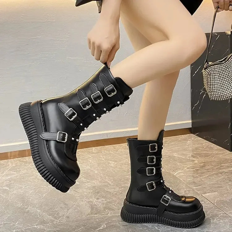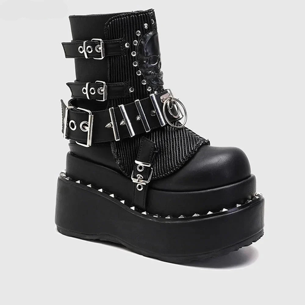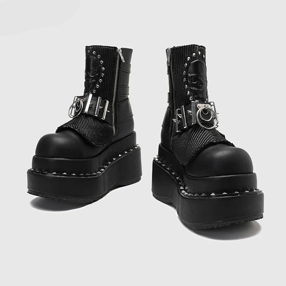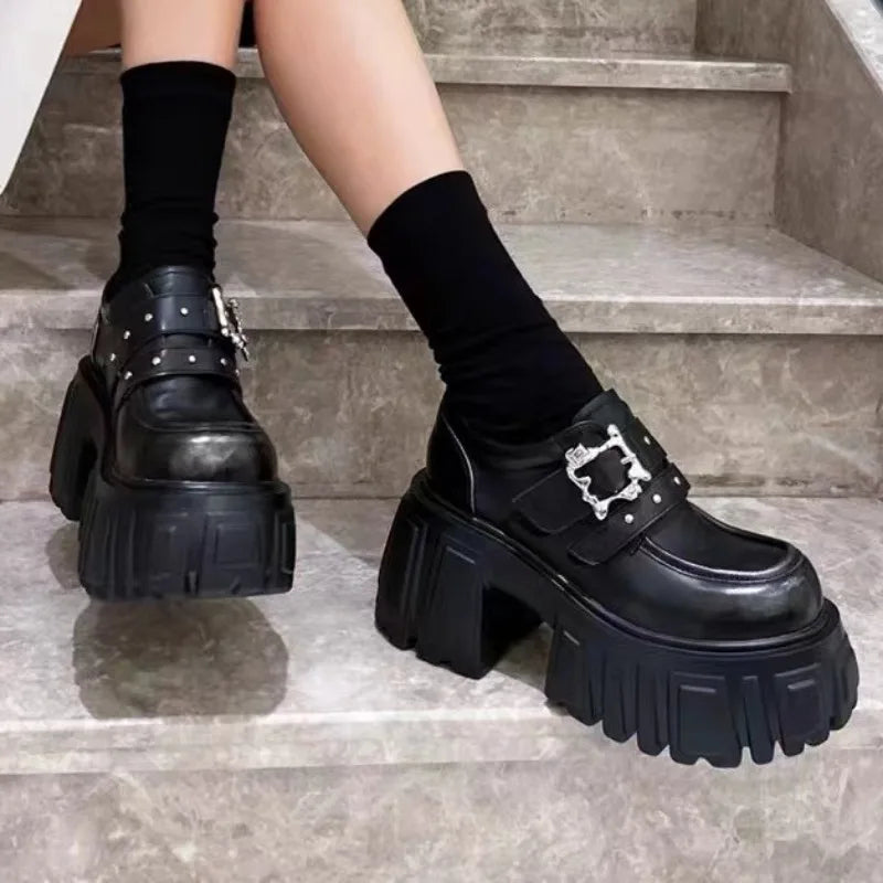 Los zapatos góticos con hebillas combinan practicidad con un estilo único, lo que los convierte en la opción perfecta para las mujeres que desean combinar la funcionalidad cotidiana con la expresión personal. Las hebillas no sólo facilitan el ajuste y ajuste al pie, sino que también añaden un elemento de modernidad y carácter. Fabricados con materiales duraderos, se adaptan a diversas condiciones climáticas, manteniendo su apariencia única. Estos zapatos son perfectos para muchas situaciones, desde salidas cotidianas, viajes y ocasiones especiales en las que el estilo va de la mano con la comodidad.