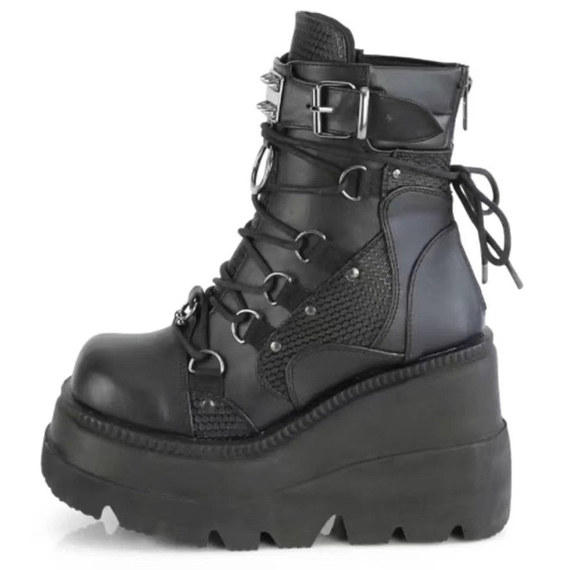 Los zapatos de cuña góticos están diseñados para brindar la máxima comodidad y estilo. Su diseño se basa en una cuña, que garantiza una distribución uniforme del peso y reduce la fatiga del pie, lo que es ideal para personas que están activas durante todo el día. Elegantes y funcionales, estos zapatos suelen combinar motivos góticos, como líneas nítidas y colores oscuros, con elementos de diseño moderno, lo que los hace atractivos y prácticos para quienes valoran la comodidad y la originalidad .